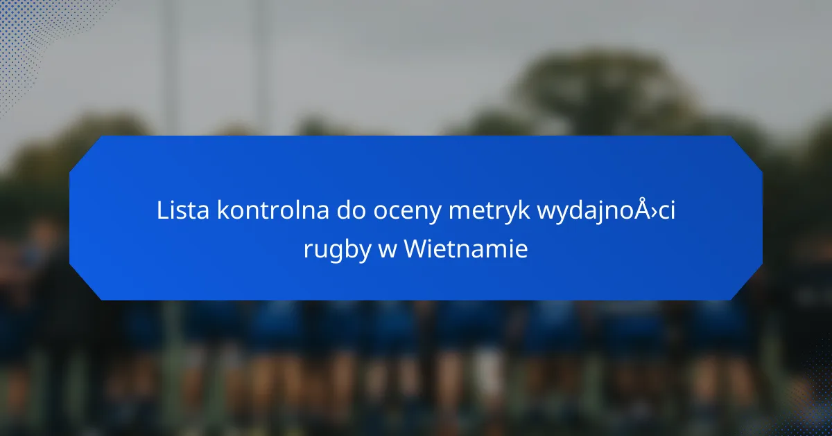 Kluczowe metryki wydajności do oceny rugby w Wietnamie obejmują statystyki graczy, wydajność drużyny, wyniki meczów, wskaźniki kontuzji oraz zaangażowanie fanów. Te metryki dostarczają informacji na temat efektywności indywidualnej i drużynowej, zdrowia oraz ogólnej popularności sportu.