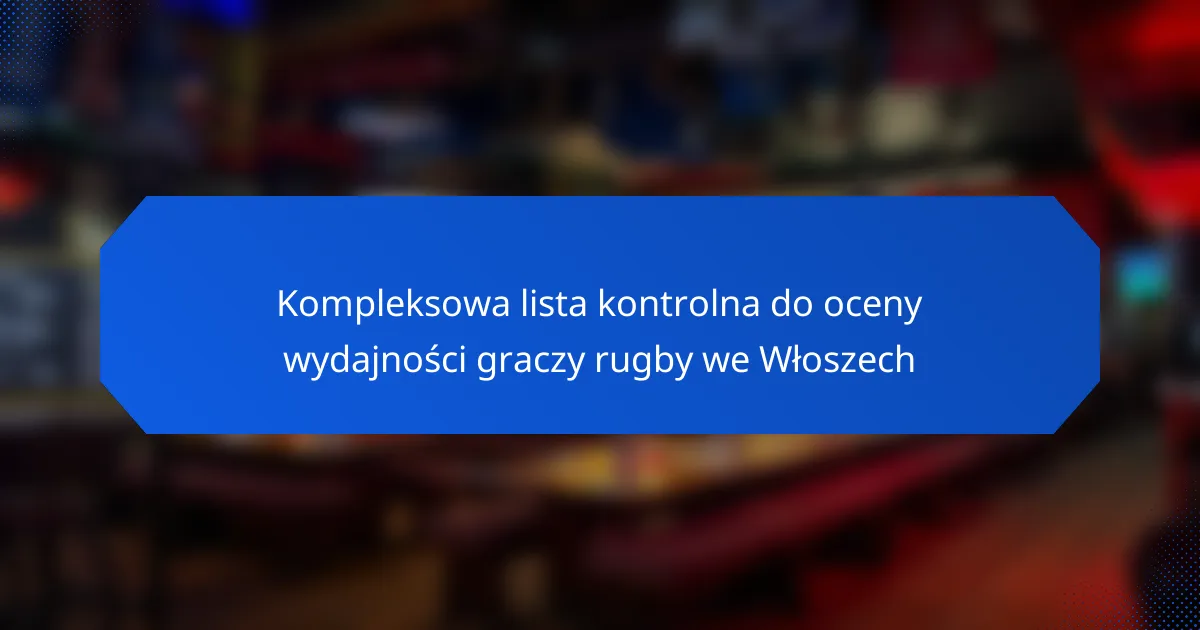 Ocena wydajności graczy rugby we Włoszech obejmuje kompleksową listę kontrolną, która uwzględnia kluczowe wskaźniki wydajności (KPI) w różnych wymiarach gry. Skupiając się na kondycji fizycznej, umiejętnościach technicznych, zrozumieniu taktycznym, odporności psychicznej i pracy zespołowej, trenerzy i skauci mogą skutecznie ocenić wkład gracza oraz jego potencjał do rozwoju. Takie ustrukturyzowane podejście zapewnia, że wszystkie krytyczne aspekty wydajności gracza są brane pod uwagę, co prowadzi do bardziej świadomych decyzji w zakresie rozwoju graczy i selekcji drużyny.