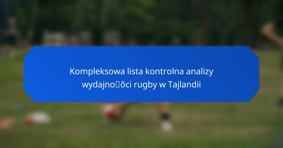 Analiza wydajności rugby jest niezbędna do oceny efektywności graczy i strategii drużynowej, szczególnie w rozwijającej się scenie rugby w Tajlandii. Wykorzystując kompleksową listę kontrolną, trenerzy mogą systematycznie oceniać różne komponenty, takie jak statystyki graczy, kondycja fizyczna i dynamika drużyny. Wdrożenie tego strukturalnego podejścia, wraz z nowoczesną technologią, umożliwia podejmowanie świadomych decyzji, które poprawiają zarówno trening, jak i wydajność w grze.