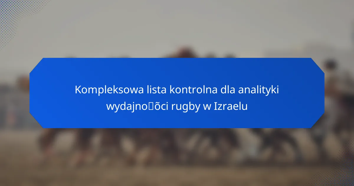 Jakie są kluczowe elementy analityki wydajności rugby?