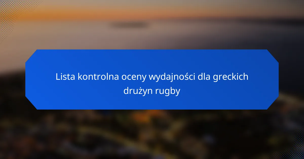 Lista kontrolna oceny wydajności dla greckich drużyn rugby jest niezbędna do identyfikacji mocnych i słabych stron w składzie. Skupiając się na kluczowych wskaźnikach wydajności, takich jak kondycja zawodników, dynamika zespołu i jakość szkolenia, drużyny mogą strategicznie poprawić swoją ogólną wydajność. To kompleksowe podejście zapewnia, że zawodnicy są nie tylko utalentowani, ale także fizycznie i psychicznie przygotowani do rywalizacji.
