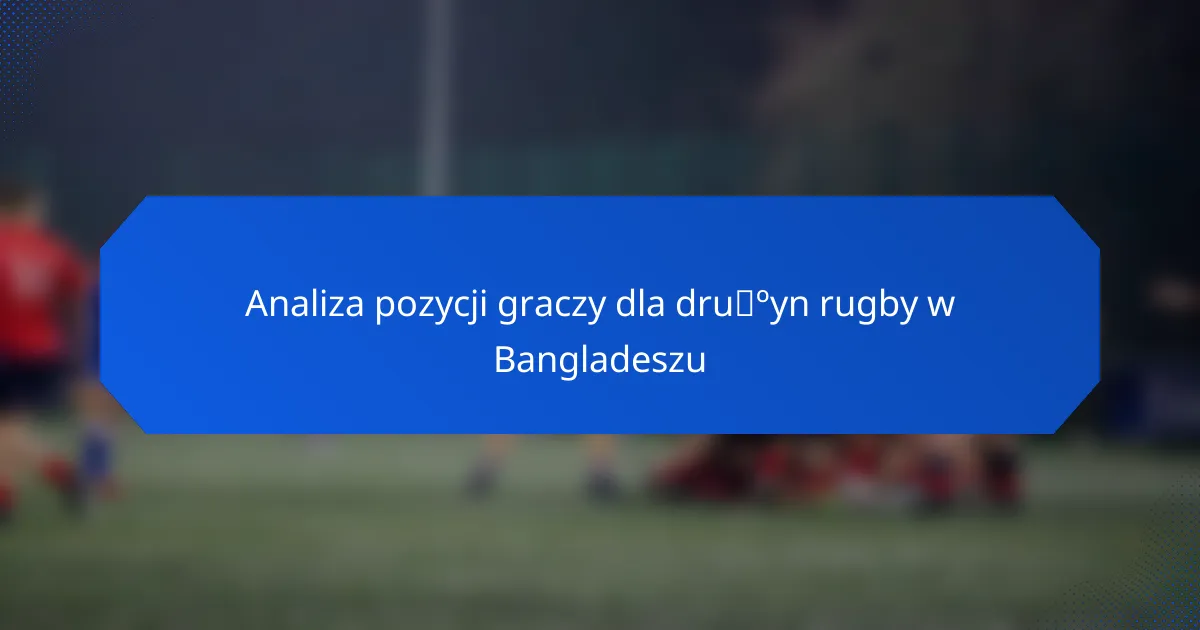 Jak drużyny rugby w Bangladeszu mogą wykorzystać analizę pozycji graczy?