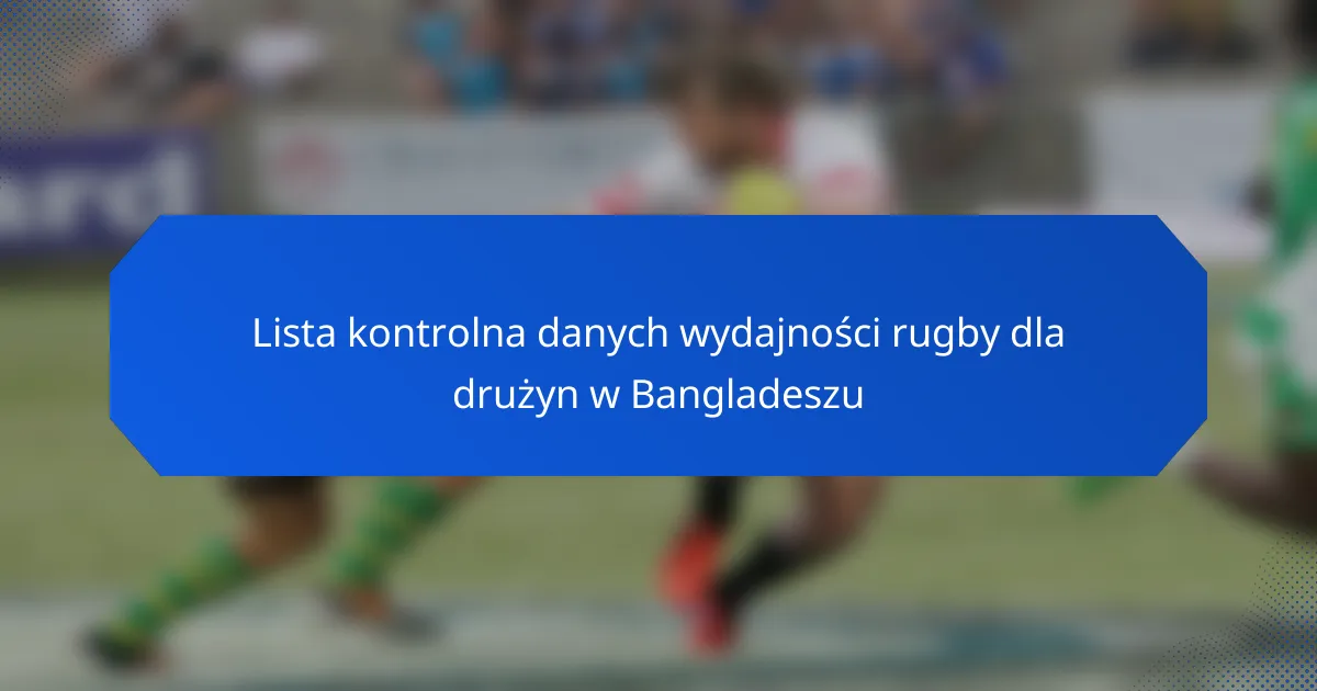 Czym jest lista kontrolna danych wydajności rugby dla drużyn w Bangladeszu?