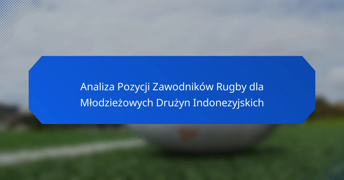 Kluczowe pozycje graczy w rugby dla drużyn młodzieżowych obejmują napastników i obrońców, z których każda ma różne role, które przyczyniają się do ogólnej wydajności drużyny. Zrozumienie tych pozycji pomaga trenerom i zawodnikom podejmować świadome decyzje dotyczące strategii treningowych i gry.