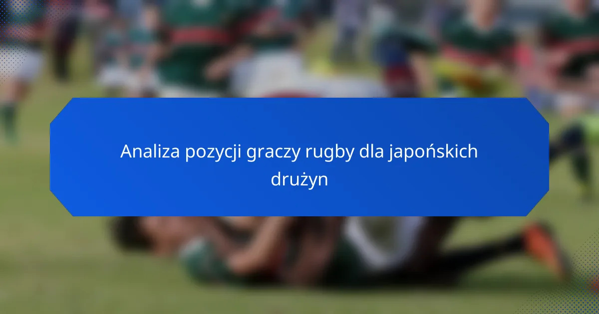 Jakie są kluczowe pozycje graczy w rugby dla japońskich drużyn?
