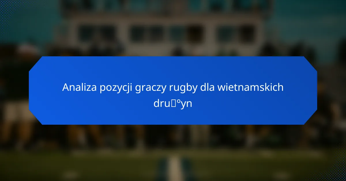 W wietnamskim rugby zrozumienie kluczowych pozycji graczy, takich jak napastnicy i obrońcy, jest niezbędne do poprawy strategii zespołu i wydajności. Każda pozycja wiąże się z unikalnymi obowiązkami, które znacząco wpływają na grę ofensywną i defensywną, co sprawia, że zespoły muszą wykorzystywać narzędzia analityczne do oceny efektywności graczy i optymalizacji wykonania gry.