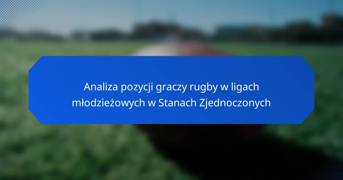 Jakie są kluczowe pozycje graczy rugby w ligach młodzieżowych?
