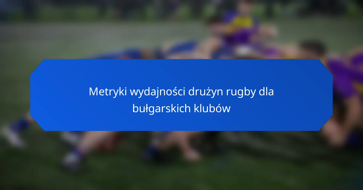 Kluczowe wskaźniki wydajności dla drużyn rugby w Bułgarii obejmują wyniki meczów, statystyki graczy, spójność zespołu, kondycję fizyczną oraz efektywność trenerów. Wskaźniki te pomagają klubom ocenić swoje mocne i słabe strony, kierując poprawami i planowaniem strategicznym.